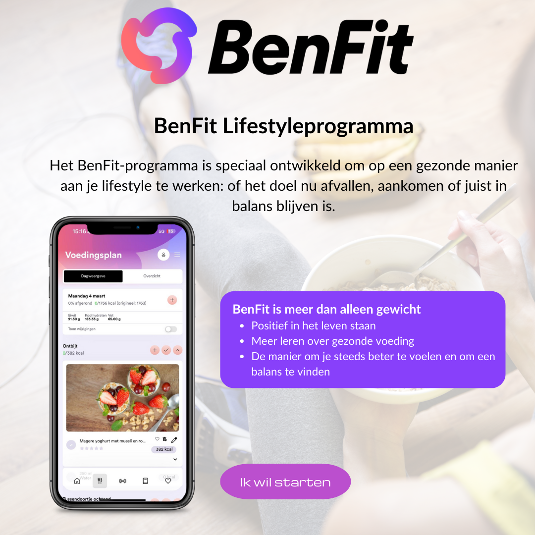 Bij Vitaal Sterk geloven we in een holistische benadering van welzijn. Daarom zijn we trots om het BenFit Lifestyleprogramma aan te bieden aan onze gewaardeerde klanten. Dit programma is niet zomaar een dieet of fitnessroutine; het is een complete levensstijlverandering.